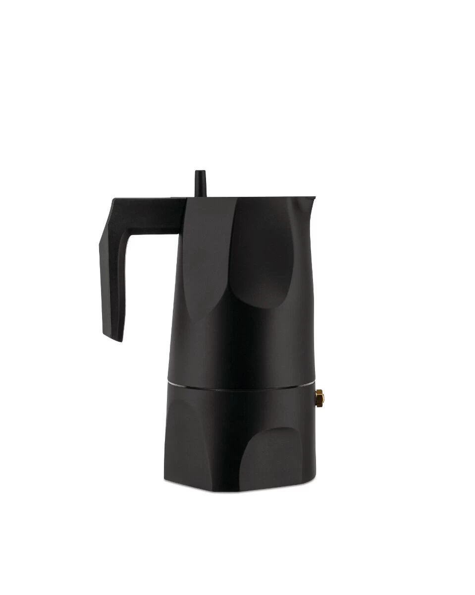De Alessi Ossidiana mokapot, ook wel percolator genoemd, is vervaardigd uit zwart aluminium en geschikt voor het bereiden van 3 koppen espresso. De espressopot heeft een hoogte van 15,8 cm. Vul de door Mario Trimarchi ontworpen mokapot met versgemalen bonen en zet deze op het fornuis om authentieke koffie te bereiden.