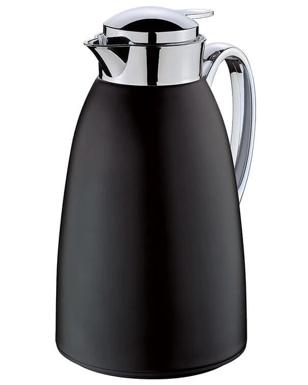 De thermoskan Venezia van Cilio is gemaakt van mat-zwart gecoat, roestvrij staal en verchroomde kunststof, en heeft een inhoud van 1 liter. Aan de binnenzijde zit een hardglazen isoleerfles. De schroefdop heeft een duimhendel om te kunnen schenken.Â