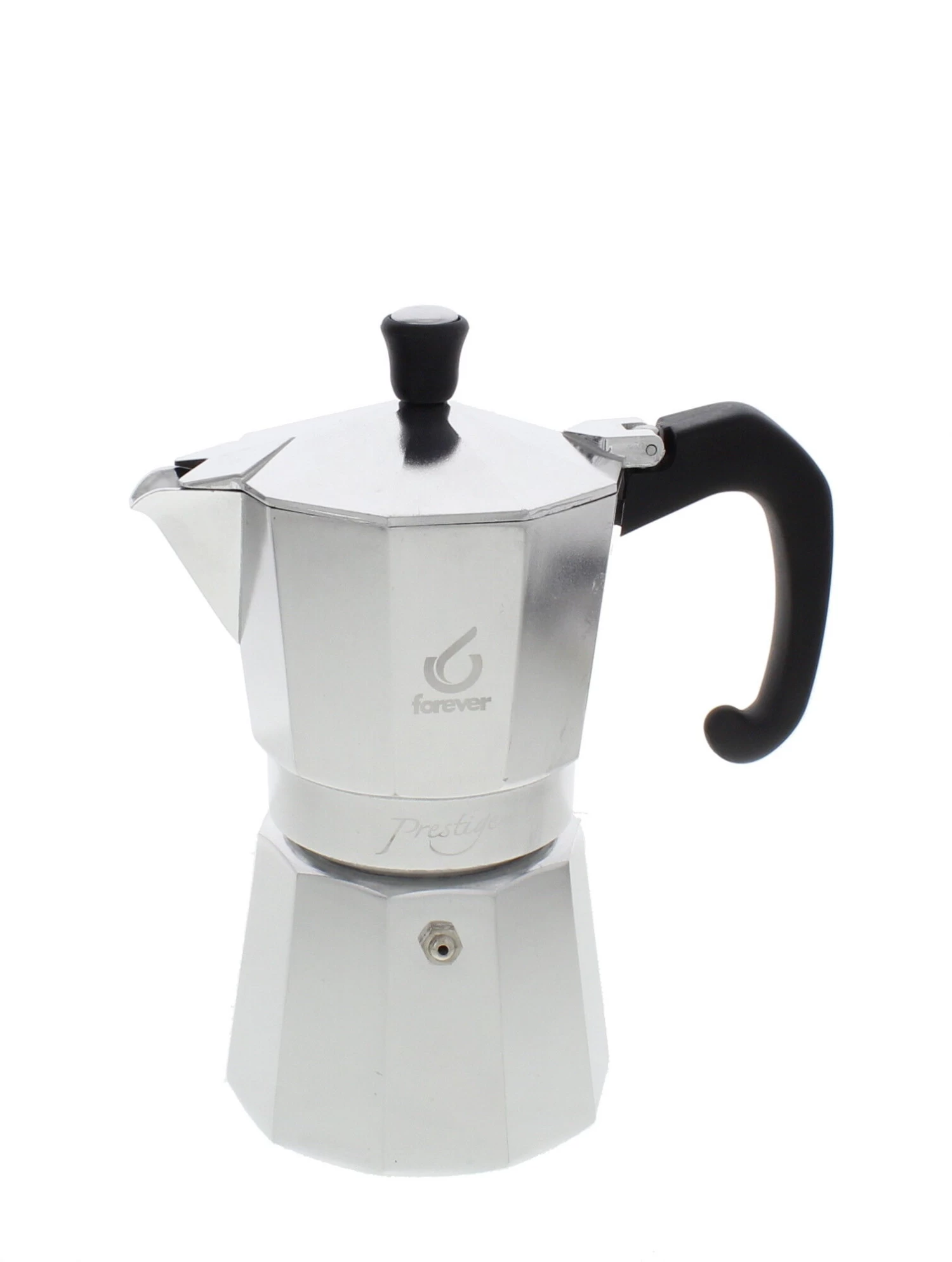 De Forever Miss Moka Prestige mokapot, ook wel percolator genoemd, is vervaardigd uit aluminium en geschikt voor het bereiden van 6 koppen espresso. Vul de mokapot met versgemalen bonen en zet deze op het fornuis om authentieke koffie te bereiden. De Forever Miss Moka Prestige mokapot is geschikt voor gebruik op een gas-, elektrisch, keramisch of halogeenfornuis.