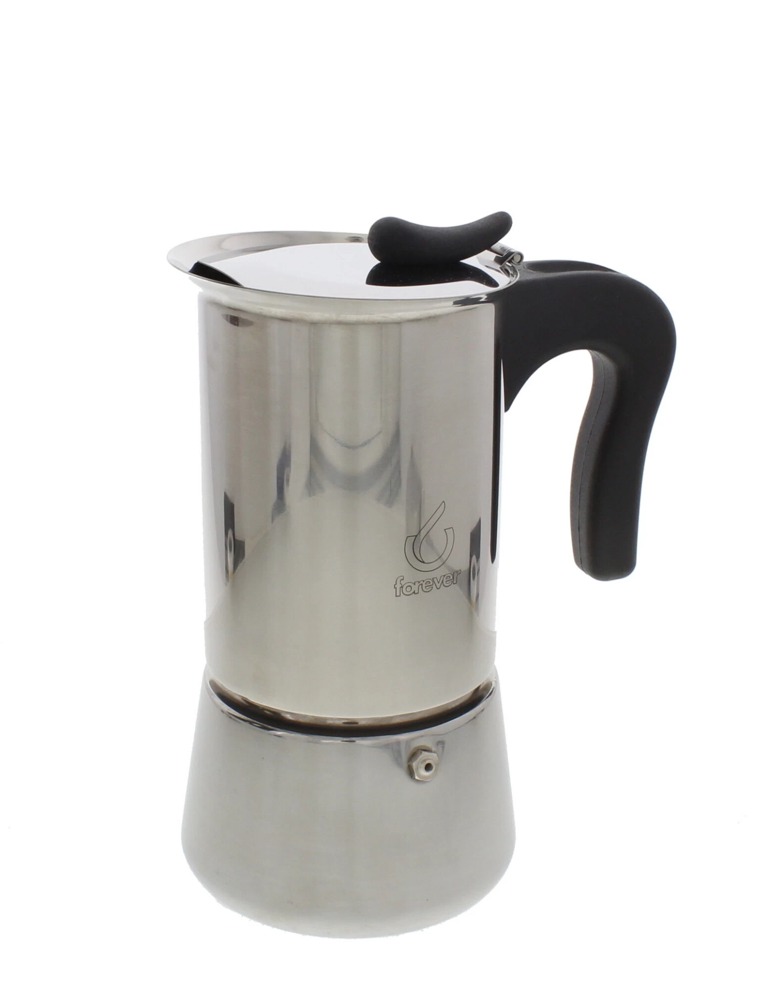 De Forever Miss Splendy Induction mokapot, ook wel percolator genoemd, is vervaardigd uit roestvrij staal en is geschikt voor het bereiden van 10 koppen espresso. Vul de mokapot met versgemalen bonen en zet deze op het fornuis om authentieke koffie te bereiden. De Forever Miss Splendy Induction mokapot is dankzij het roestvrij staal geschikt voor het gebruik op alle warmtebronnen, inclusief inductie.