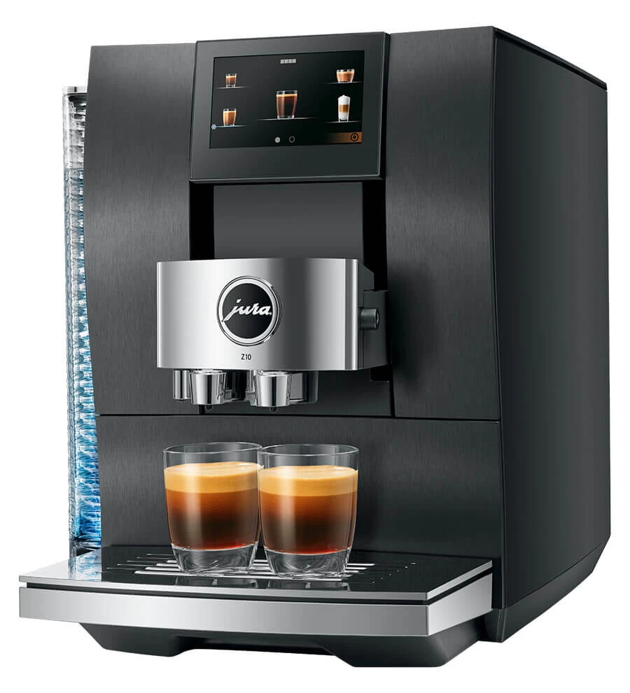 De JURA Z10 is een volautomatische espressomachine waarmee u hele koffiebonen met een klik op de knop omzet in heerlijke espresso. De machine heeft een afmeting van 45 x 32 x 38 cm (l x b x h) en heeft een waterreservoir met een inhoud van 2,4 liter. De ingenieurs van JURA hebben het baanbrekende Product Recognising Grinder (P.R.G.) ontwikkeld. Via de elektronische besturing stelt de precisiemolen zichzelf binnen fracties van seconden individueel in op de vooraf gedefinieerde maalgraad. Dit zogrt voor een groter spectrum van koffiespecialiteiten. Met één druk op de knop bereidt de machine het gehele palet van warme producten en is het voor het eerst mogelijk om Cold-Brew-specialiteiten te bereiden. De P.R.G. herkent de gekozen specialiteit en past de maalfijnheid extact en snel aan. Met het Cold Extraction Process, ontwikkeld door JURA, wordt koud water onder hoge druk langzaam pulserend door de versgemalen koffie geperst en zet u een verfrissende Cold-Brew koffie.