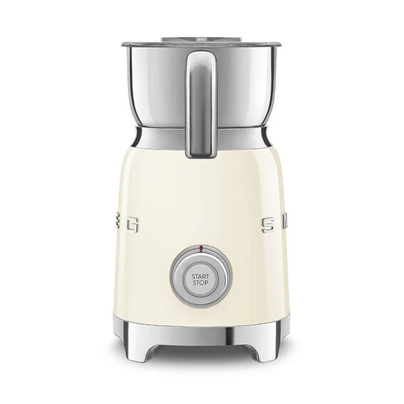De crèmekleurige SMEG 50’s style elektrische melkopschuimer is gemaakt van roestvrij staal en is vormgegeven in een jaren ’50 retro-stijl. De melkopschuimer klopt melk op door middel van een klopspiraal in de bodem van de melkbeker. De karaf heeft een inhoud van 1,5 liter, voldoende voor 6 kopjes. De melkbeker is vervaardigd van roestvrij staal met een satijnafwerking. Gebruik de melkopschuimer om melk voor verschillende koffiebereidingen op te schuimen te verwarmen.