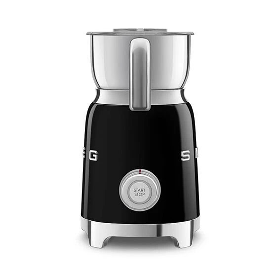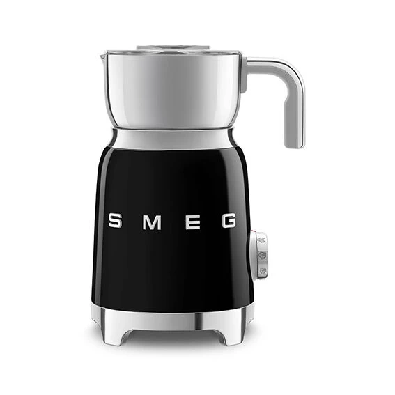 De zwartkleurige SMEG 50’s style elektrische melkopschuimer is gemaakt van roestvrij staal en is vormgegeven in een jaren ’50 retro-stijl. De melkopschuimer klopt melk op door middel van een klopspiraal in de bodem van de melkbeker. De karaf heeft een inhoud van 1,5 liter, voldoende voor 6 kopjes. De melkbeker is vervaardigd van roestvrij staal met een satijnafwerking. Gebruik de melkopschuimer om melk voor verschillende koffiebereidingen op te schuimen te verwarmen.